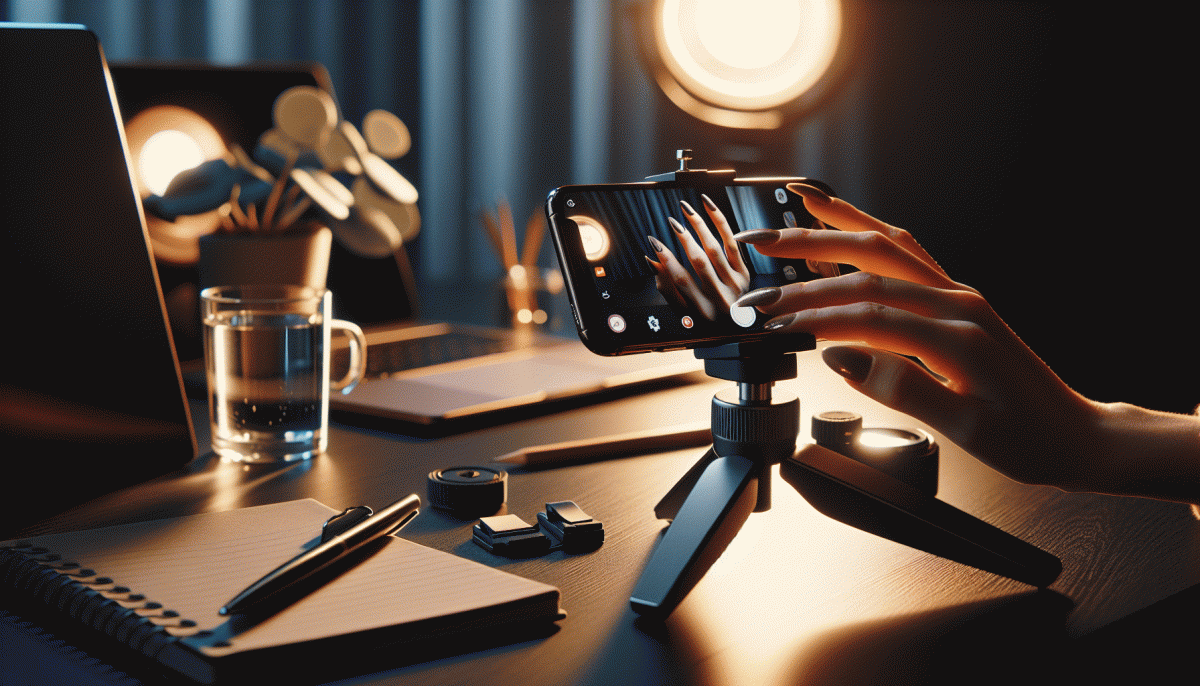 Audio is the dealbreaker. Plug in the mic, run a 10 second voice check, and listen back through headphones so you can hear background hiss or pops. Then frame your camera: headroom, centered eyes, and a slight tilt forward to look engaged. Finally, test lighting by flipping the phone; natural light works, but a small ring light kills shadows.